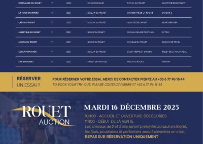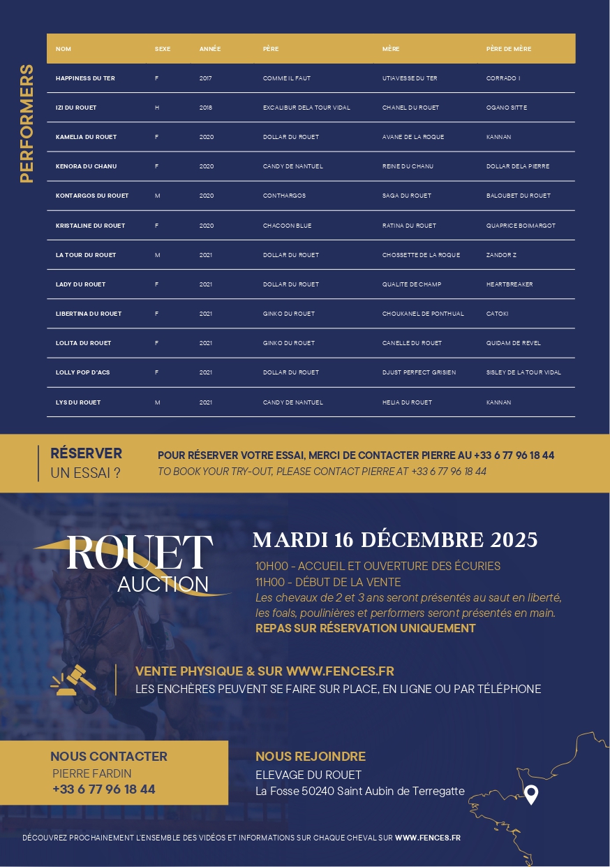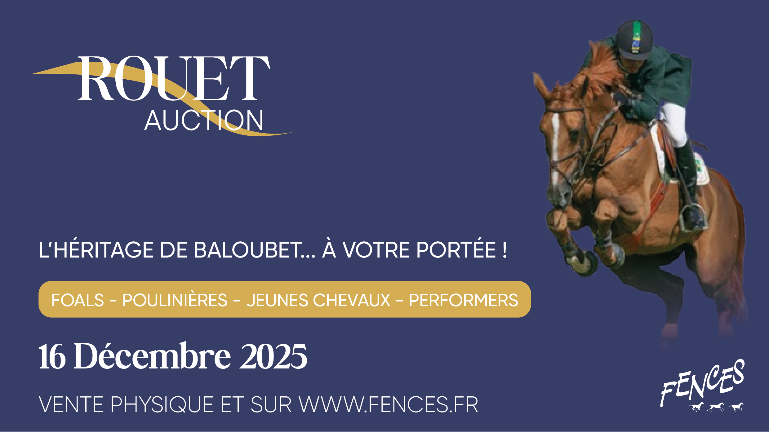 L’Agence Fences, en association avec l’Élevage du Rouet, organise une nouvelle vente aux enchères de foals, poulinières, jeunes chevaux et performers.